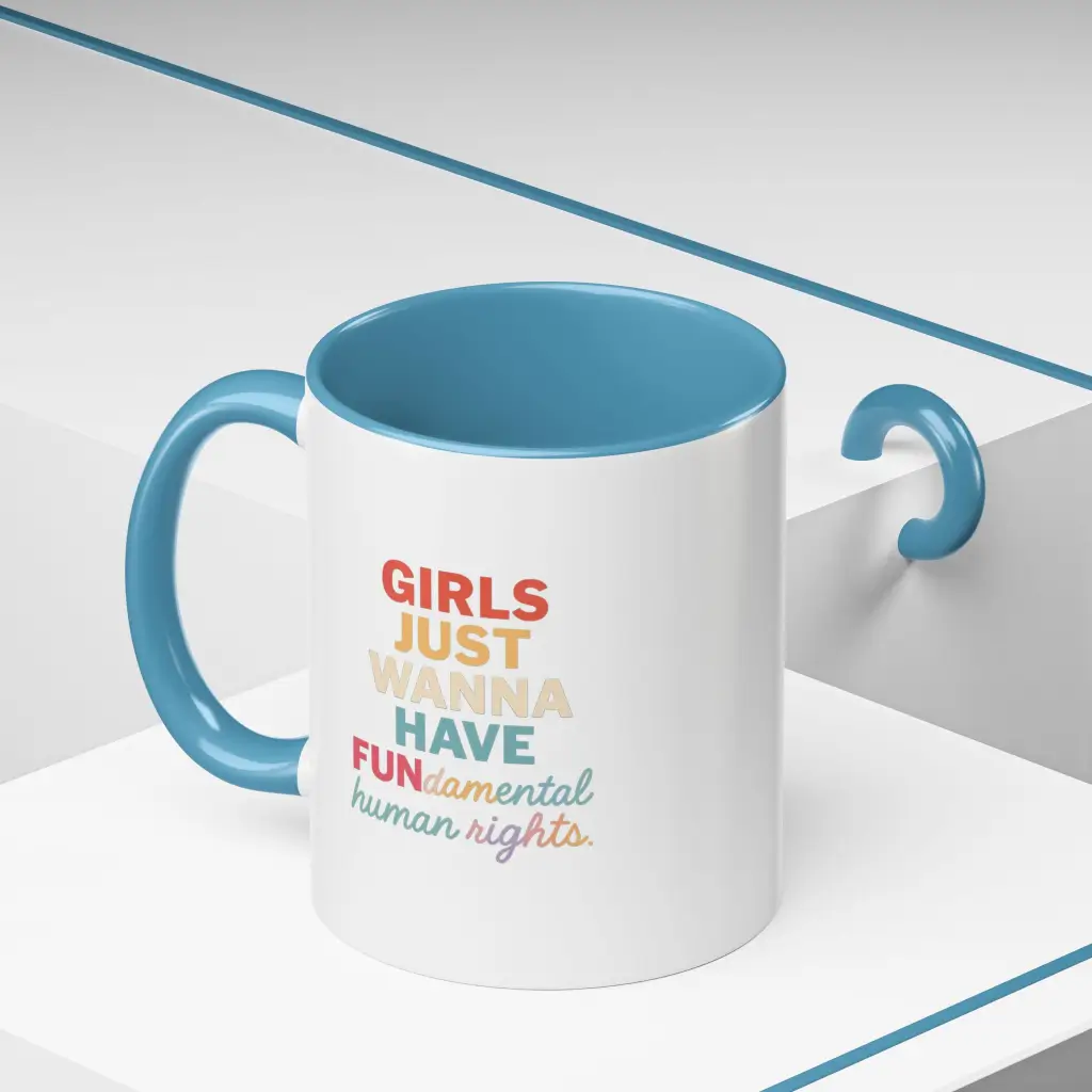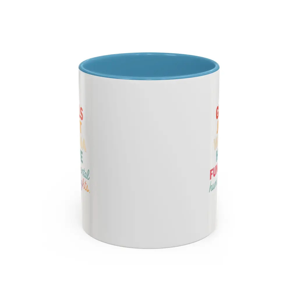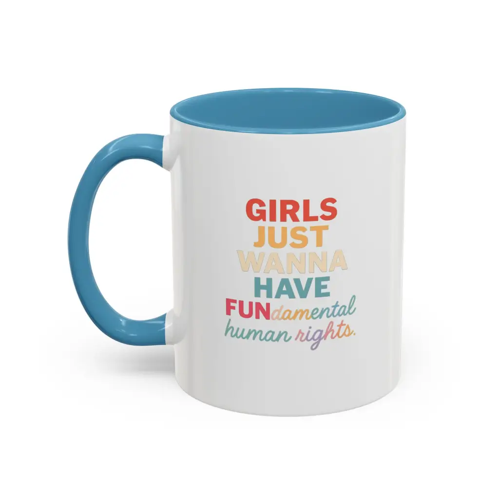 Start your day with a reminder that empowerment is essential, not optional. This “Girls Just Wanna Have Fundamental Human Rights” mug is a bold yet playful statement for feminists, progressives, and allies who believe in equality.