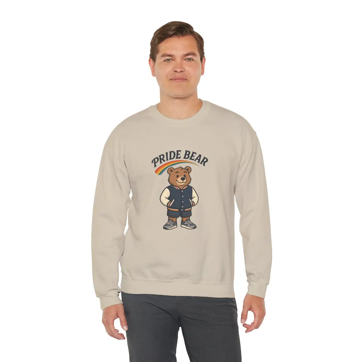 Celebrate love, pride, and identity with this adorable Pride Bear sweatshirt — the perfect blend of cozy comfort and bold LGBTQ+ ally support. Featuring a friendly bear in a varsity jacket under a rainbow arc, this design spreads joy, positivity, and inclusivity everywhere you go.